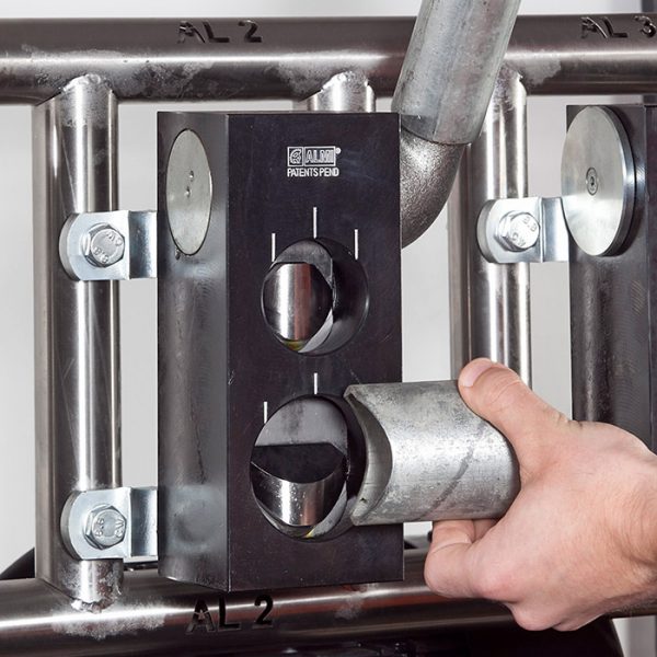 With the pipe notcher AL2 you can notch external pipe diameters of Ø48.3 (1 ½”) and Ø60.3 (2″). Unlike punch bending machines with separate auxiliary tools, the pipe notcher from ALMI is always immediately available. And the price is even lower than the relevant tool for such a machine. The machines with manual operation are easy to mount on the wall. With ALMI pipe notchers, filing or milling pipes is a thing of the past. Thanks to their favourable price and high productivity, the ALMI pipe notchers are a great investment. Thanks to the add-on lever, you can easily notch a pipe with little effort.