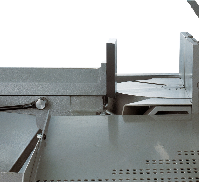Wide working space 460 mm diameter with rotating table integral with the saw frame to avoid incisions of the table, rotation on thrust ring with pre-loaded thrust bearing.
