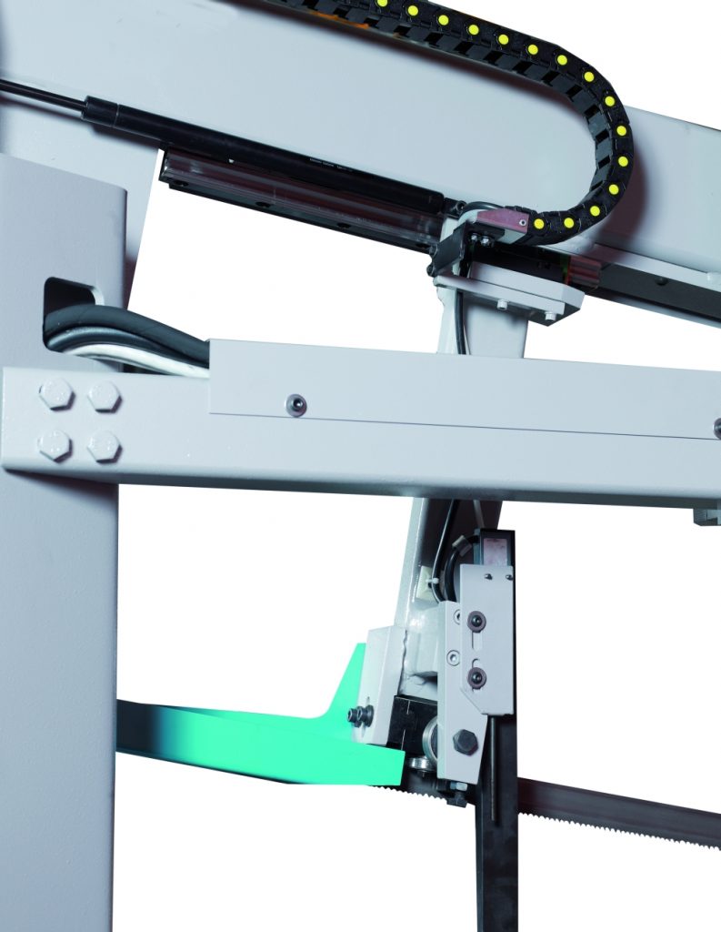 On our sawing machines the mobile blade guide is automatically kept in contact with the cutting point.