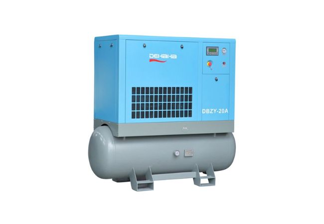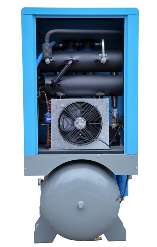 DEHAHA ALL IN ONE series compressed air system integrates screw air compressor, refrigerated air dryer, and air receiver tank into one assembly.